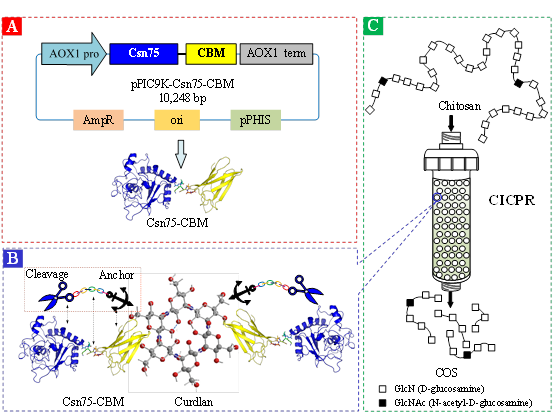 博士生周剑丽为第一作者。上述研究工作得到了国家轻工技术与工程一流学科(LITE2018-08)、江南大学糖化学与生物技术教育部重点实验室2020开放课题:《融合CBM高效固定化壳聚糖酶用于壳寡糖的可控制备》(项目编号:KLCCB-KF202007)等项目资助。