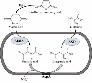图1 顺酐合成L-丙氨酸的多酶级联反应示意图