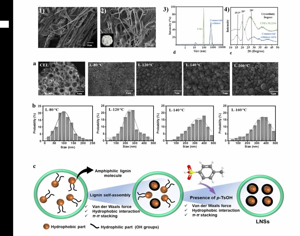 图2纳米纤维素和木质素纳米球表征及其形成机理