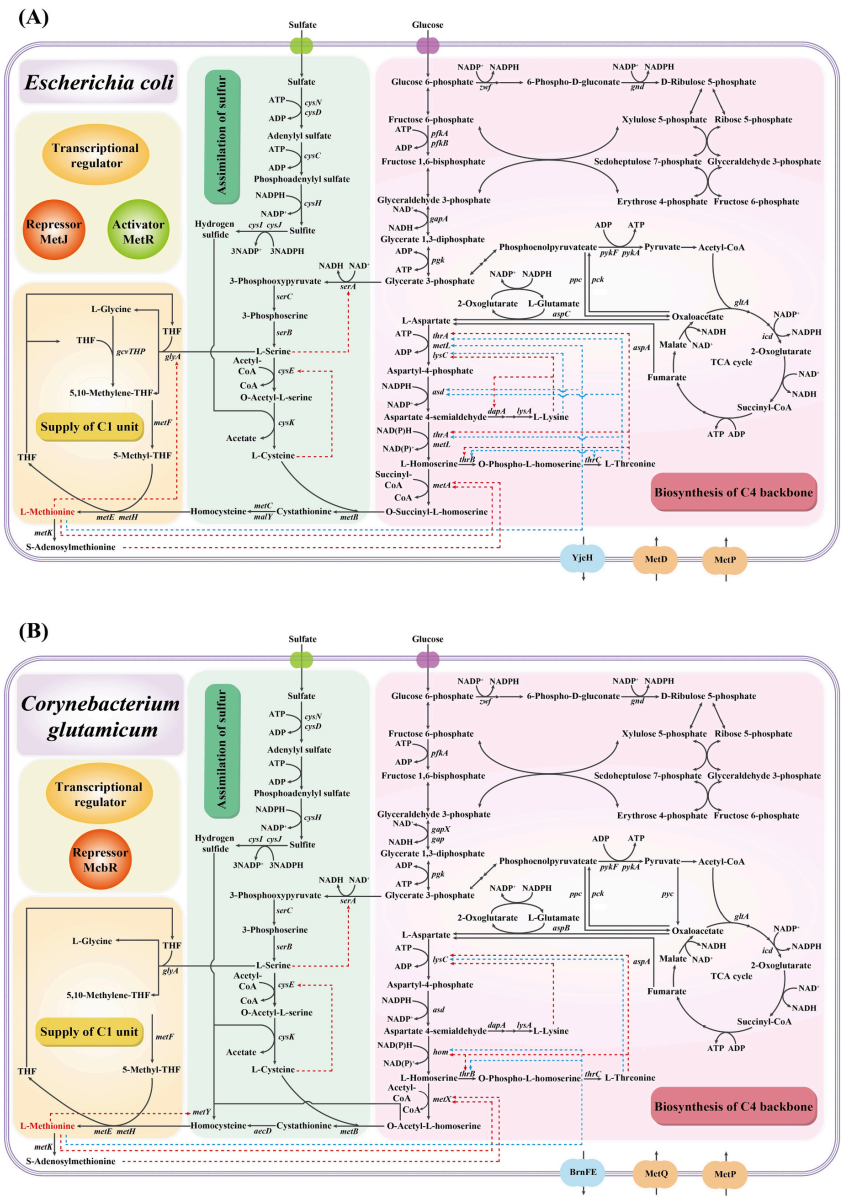 2大肠杆菌和谷氨酸棒状杆菌中L-甲硫氨酸生物合成途径和调控机制