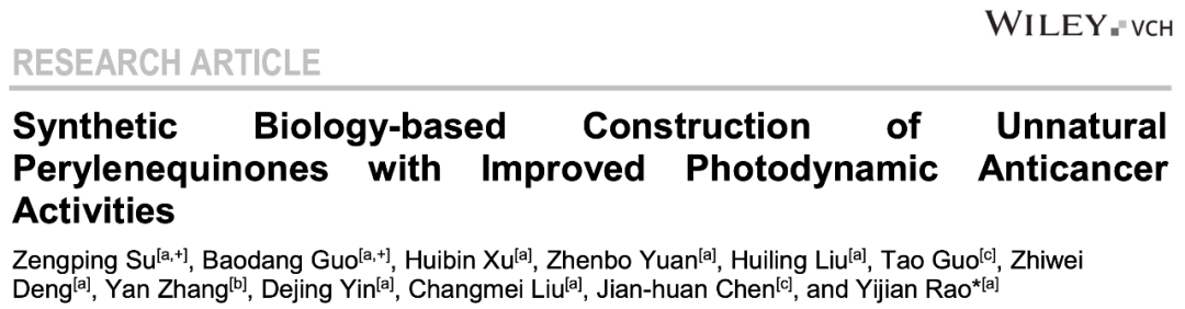 上述工作在线发表在Angewandte Chemie International Edition,饶义剑教授为该论文的通讯作者,江南大学博士生苏增平和郭保党为该论文的共同第一作者。上述研究工作得到了国家重点研发计划(2018YFA0901700),国家自然科学基金(32270082),江苏省自然科学基金(BK20202002)和江苏省研究生科研与实践创新项目(KYCX21_2020)等基金资助。