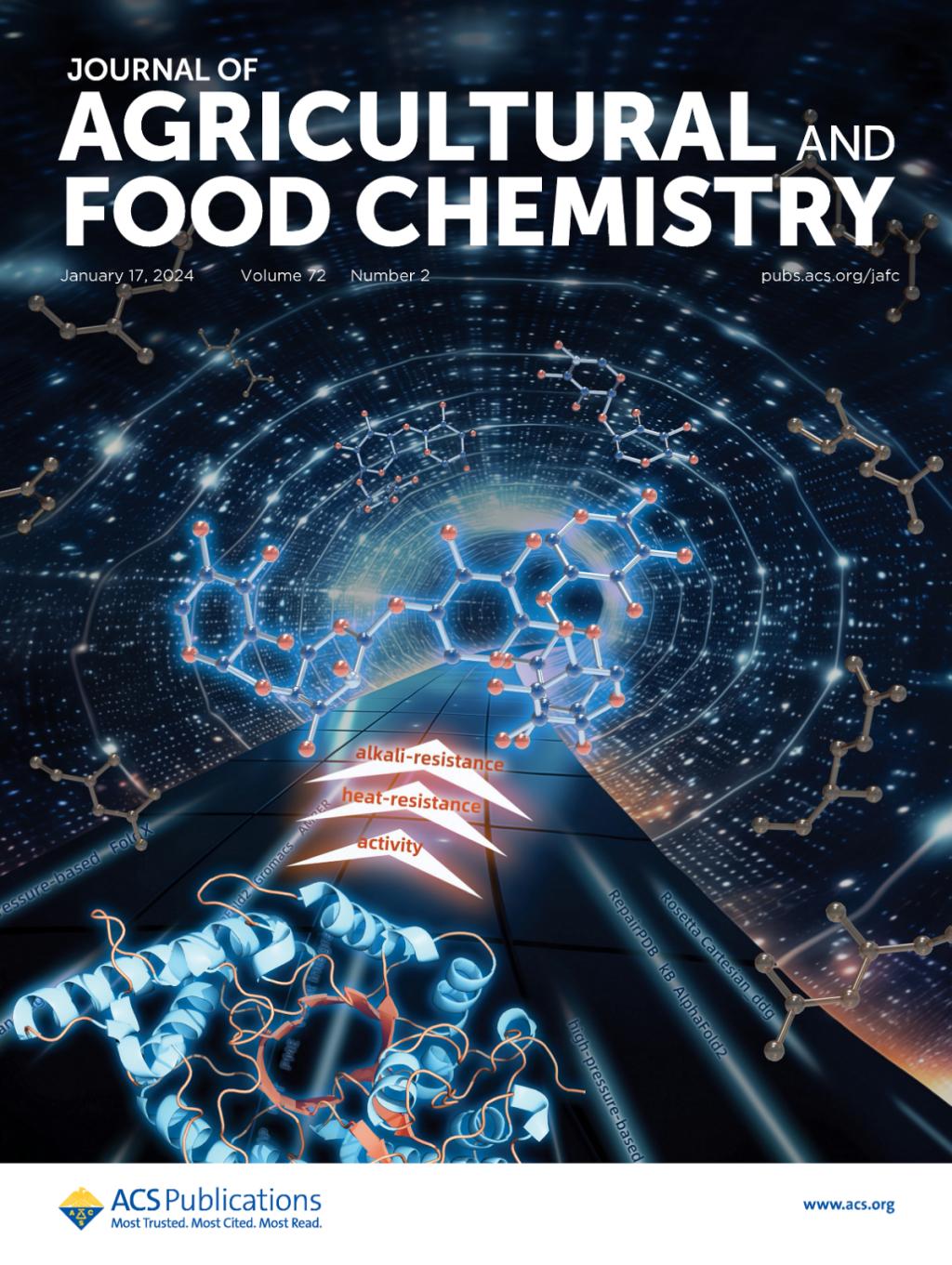 工业生物技术教育部重点实验室夏小乐教授团队在耐热耐碱木聚糖酶的改造与应用研究取得新进展,研究结果“Computer-Aided reconstruction and application of Bacillus halodurans S7 xylanase with heat and alkali resistance”封面正式发表于Journal of Agricultural and Food Chemistry (Top期刊、SCI一区期刊,IF=6.1) (//doi.org/10.1021/acs.jafc.3c08221)。