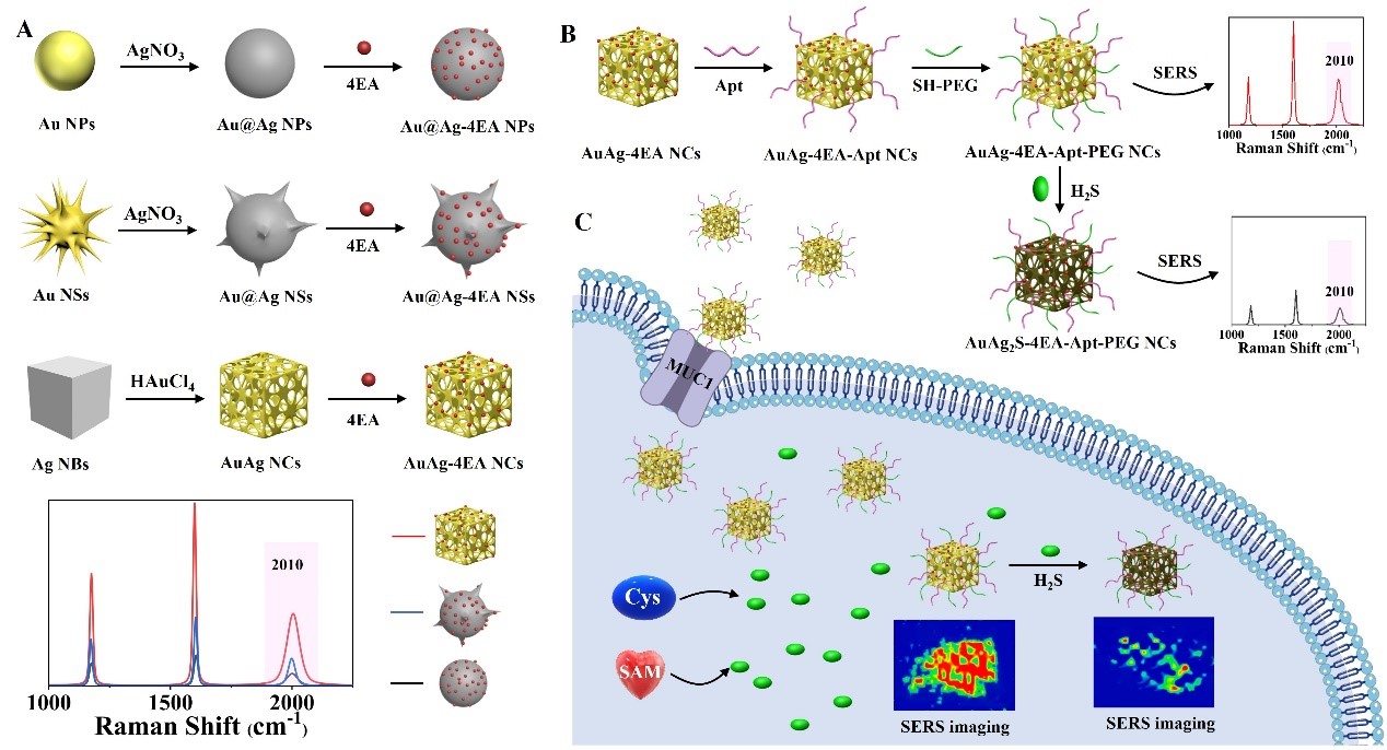 周楠迪教授团队在硫化氢检测方面取得重要进展,研究成果“Quantitative detection and cellular imaging of hydrogen sulfide using a SERS probe based on AuAg nanocages”正式发表于Biosensors and Bioelectronics(IF = 10.7)(//doi.org/10.1016/j.bios.2025.117580)。