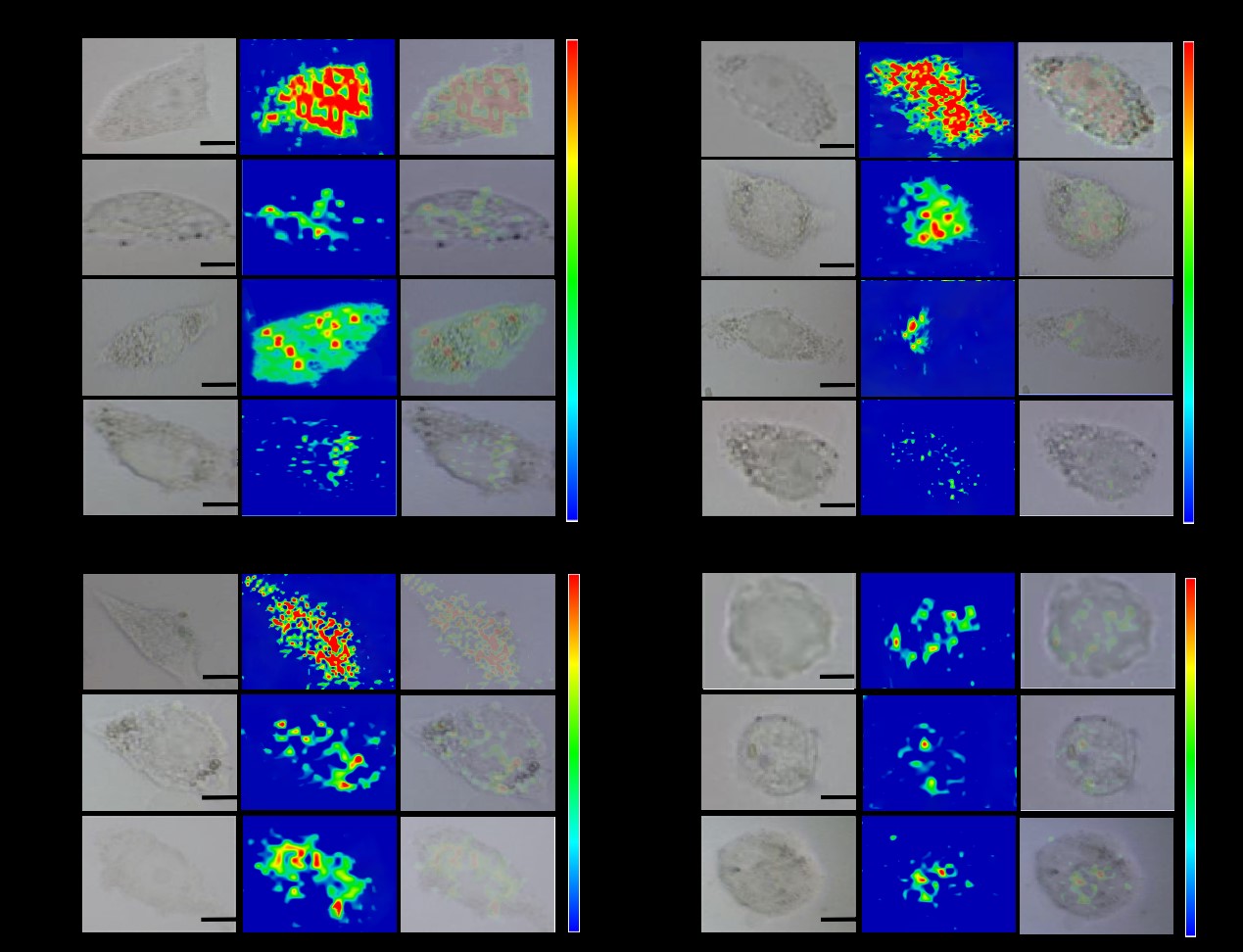 图3 SERS探针对活细胞内外源性及内源性H2S的SERS成像分析