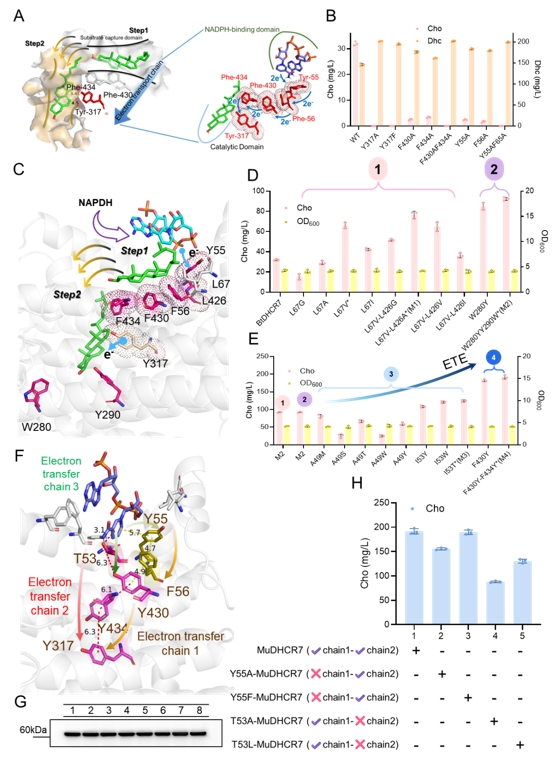 图1 DHCR7的底物捕获域、底物结合域和电子传递链工程