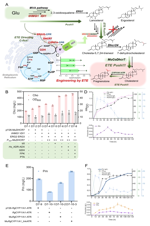 图5 电子传递工程改造细胞工厂高效合成胆固醇和孕烯醇酮