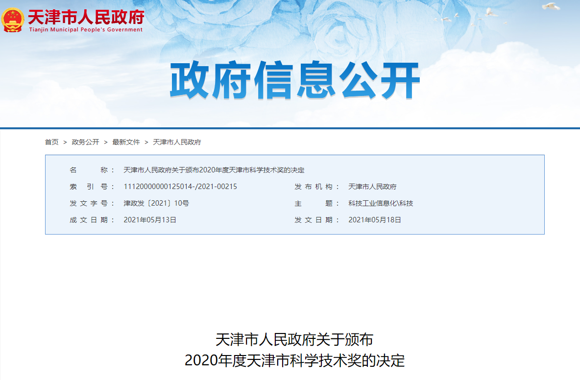 5月18日,天津市人民政府正式发文颁布了2020年度天津市科学技术奖的决定。UED体育官网