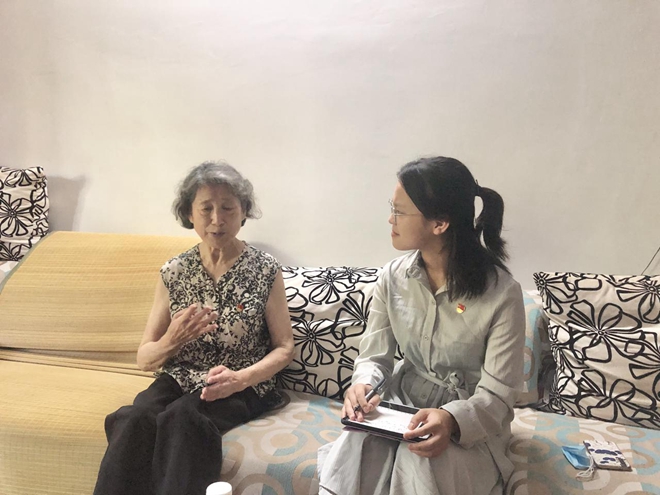 【嘉兴日报-嘉兴在线9月2日】致敬先锋,传承红色基因;追寻足迹,了解身边历史故事。今天上午,秀洲区新城街道春晓社区开展了一场别开生面的暑期实践活动。来自江南大学生物工程专业的大三学生韩孟希,来到春晓社区王存美的家中,采访了这位党龄超过60年的老党员。