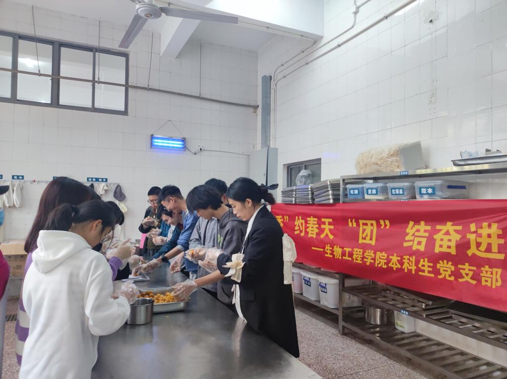 活动开始前,支部书记带领同学们共同学习了习近平总书记关于劳动的重要论述和《关于全面加强新时代大中小学劳动教育的意见》。活动中,同学们在点心师傅的教学下分组行动,认真揉面搓条、包馅捏合,喜欢甜味的放入豆沙,钟爱咸味的放入蛋黄肉松,一个个浑圆可爱的青团摆满了笼屉,有的同学们还发挥创造性,制作了各种造型的青团,活动现场充满了欢声笑语。