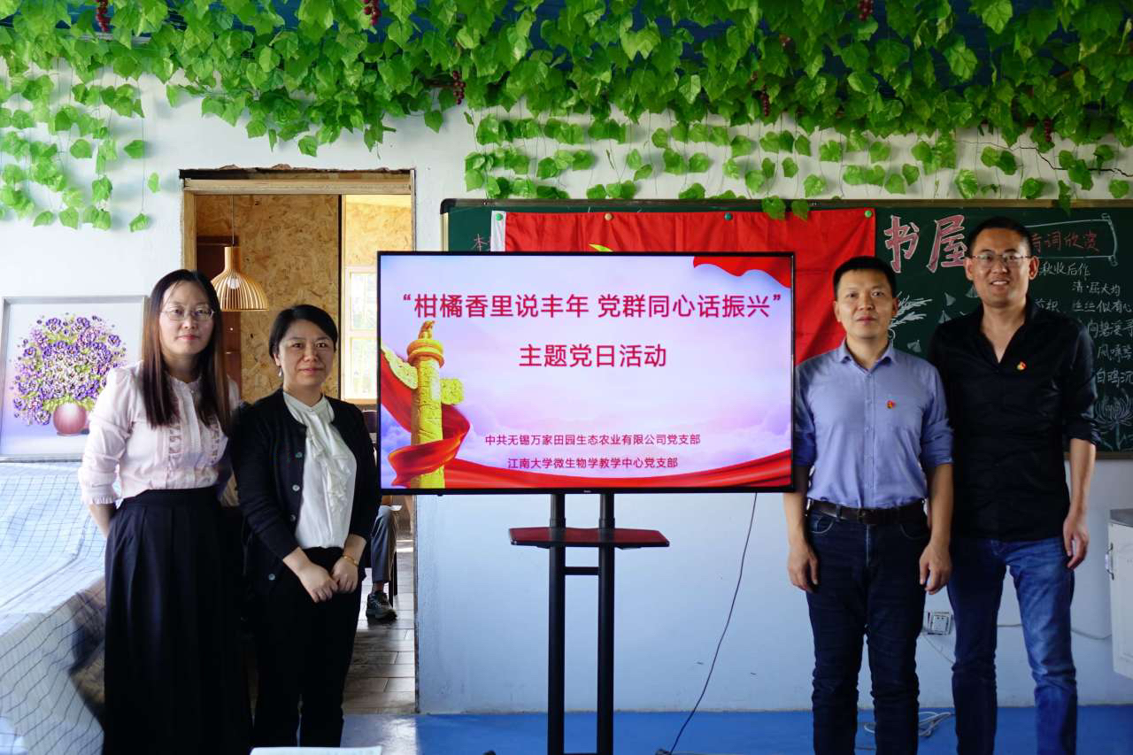 教工微生物学教学中心党支部与无锡万家田园生态农业有限公司党支部,在万家田园军嶂田园社区党建生活馆联合开展“柑橘香里说丰年,党群同心话振兴”主题党日活动。无锡万家田园生态农业有限公司党支部书记罗玉军,教工微生物学教学中心党支部书记陈献忠、副书记徐美娟及双方党员代表参加本次活动,活动由罗玉军主持。