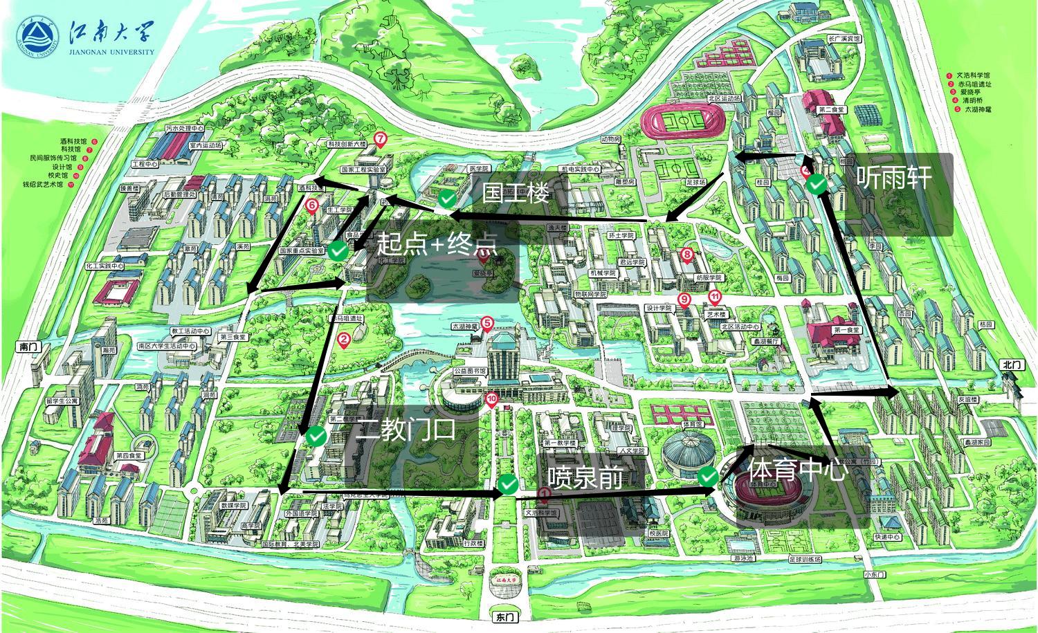 为增强体育锻炼的趣味性,增进新同学对江南大学的熟悉度,本次夜跑活动沿途共设5个任务点。夜跑正式开始前,同学们首先进行了热身活动,领取荧光物资后同学们纷纷前往各任务点。健康的定义包括身体健康和心理健康。来到第一个任务点的同学们,通过扫码答题,回答心理小知识获取任务勋章。在第二个任务点,喷泉与荧光的碰撞带给学生们不一样的光影体验,通过相互合作与配合,学生们顺利完成各项任务。百年党史,点点星光。同学们在体育中心任务点通过扫码答题的方式,回顾了中国共产党的百年征程,以期不忘初心,砥砺前行。在热闹的校园里,大家相互鼓励,共同前进。经历了脑力与体力的双重比拼后,同学们回到了UED体育