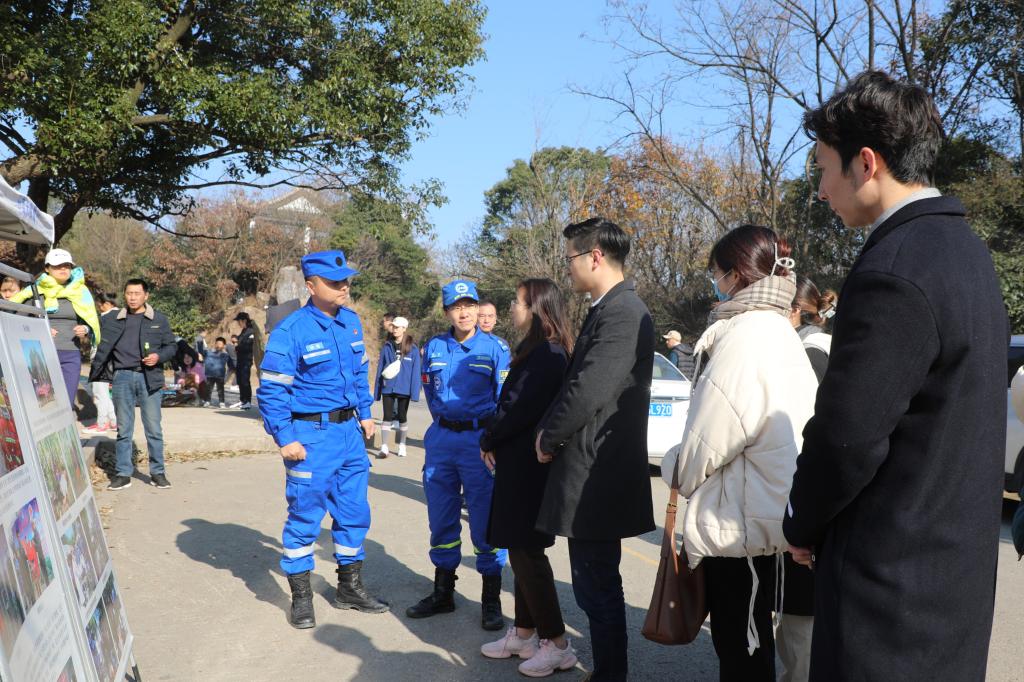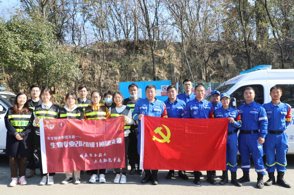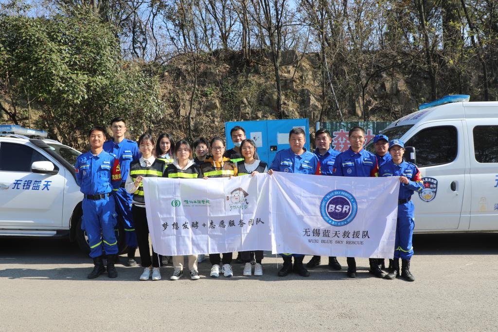 分团委书记、学工办主任许亦男,辅导员桑鸿波、宋大有,生物工程学院朱宝镛特称团支部、学院青马班成员们,共同来到惠山森林公园应急救援服务站,与无锡市蓝天救援队党支部开展党团活动。