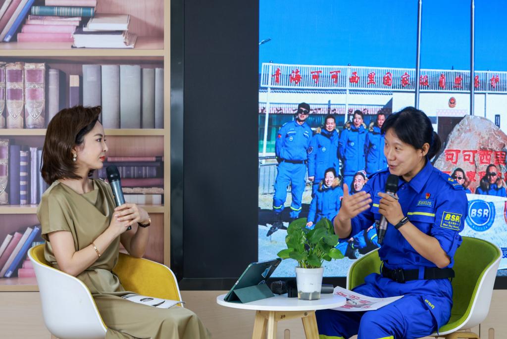 本期读书会的主题是“向阳携行,共创未来”,有嘉宾访谈、书籍朗读、互动分享等环节。活动伊始,主持人方丹琼为观众们朗读了《青春》,句句动人心扉,引人共鸣。张丽分享了作为蓝天救援队成员,无数次奔赴救援一线的内心感受与坚定助人初心的力量所在。随后,蒋东永讲述了自己在遭遇疾病打击后,如何克服困难成为盲人楹联大师的励志经历,并为观众们带来原创作品朗读《我们的心没有距离》。紧接着,主持人分别与两位青年学生榜样进行了连线,雷庆子讲述了自己突破技术瓶颈,用科研服务社会的实际经历,朗读莫言作品《不被大风吹倒》。鲁晨辉分享了前往云南芒宽中学支教的点滴经历与真切情感,为观众们带来了《瓦尔登湖》节选朗读。活动最后,蔡文花聚焦沮丧和挫败两种情绪,从压力应对、人际沟通、亲密关系等方面,为观众们提供了有效建议。