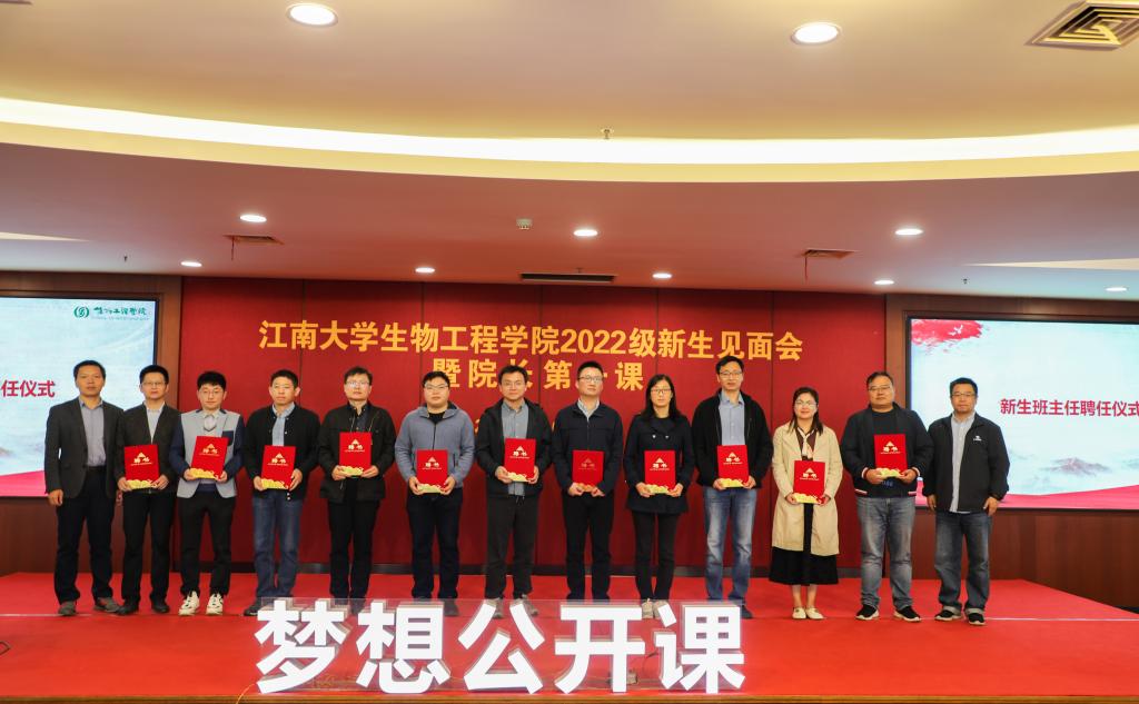 班主任是新生班级重要的主心骨。班主任队伍作为深入开展大学生思想政治教育和助力青年人全面成长成才的一支重要力量,在学院人才培养中发挥重要作用,学院涌现出江南大学优秀班主任、我最喜爱的老师等诸多先进典型。在2022级新生见面会上,院领导为新聘任的14位2022级班主任颁发聘书。基地2201班班主任宿玲恰教授代表新生班主任发言,她希望同学们树立目标、找准定位,勤奋学习、加强自律,学会沟通、主动交流,争做出彩生工人。开学一个月内,新生班主任召开班会2次,走访宿舍2次,谈心谈话累计达百余次,以实际行动诠释班主任不仅是专业知识上的导师,更是生活上的知心朋友,应当全心全力为新同学们系好人生第一粒扣子。