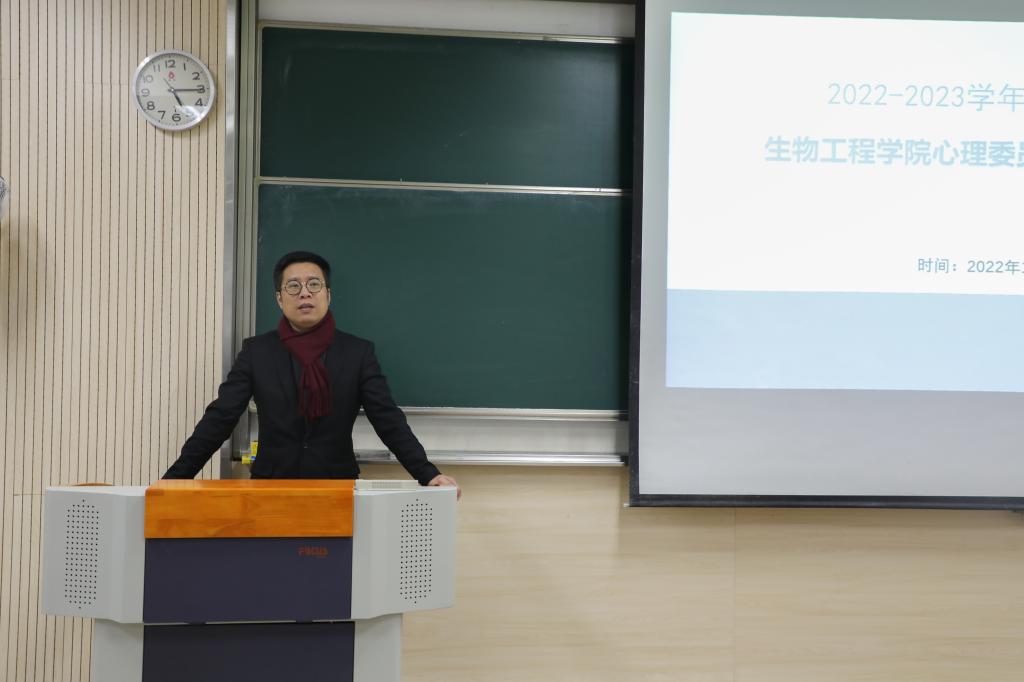 随后,宋大有以《心分享、新起航》为主题,对朋辈心理工作的角色定位和工作职责进行了说明,对工作中的技能与策略进行了全面讲解。他提出,心理委员和宿舍长是我校五级心理工作网络体系的关键环节,是老师与学生沟通的桥梁和纽带,希望同学们能够在心理健康宣传教育、心理健康活动组织、朋辈互助等方面发挥更积极的作用。