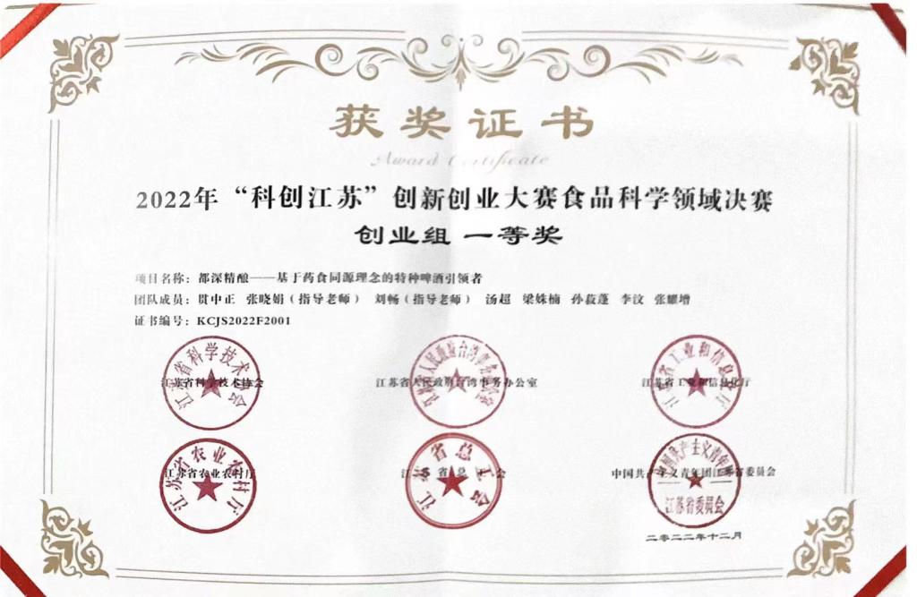 参赛项目荣获食品科学领域创业组一等奖。