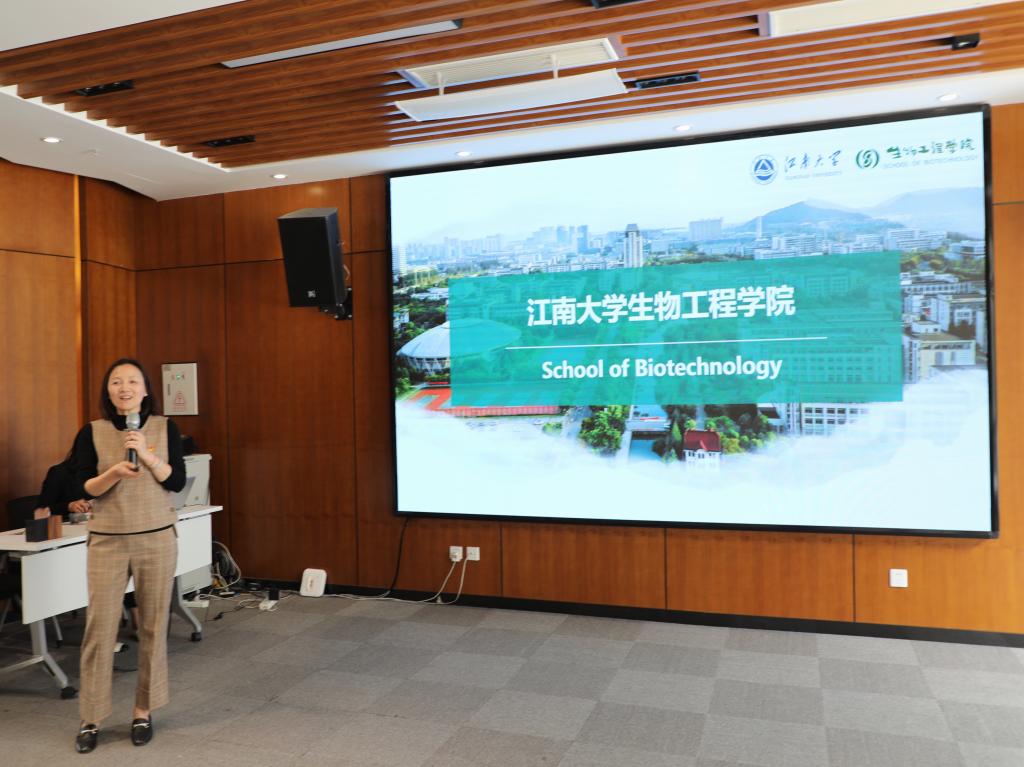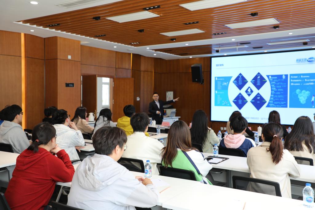 作为中国发酵工程师的摇篮的历史沿革和一流学科建设理念,以及学院在人才培养、科学研究等各方面取得的成绩。学院2021级博士生张佳宁作为学生代表交流分享了目前的科研课题,并向蔚蓝生物提供的交流机会表示感谢。