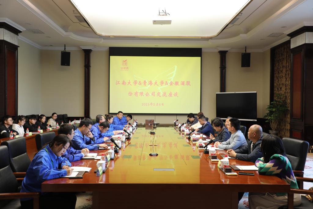 5月6日上午,在交流座谈会上,金徽酒股份有限公司总工程师张智良,总经理助理、人才开发院院长吴伟分别就公司整体情况和人才政策进行了介绍。陈双在发言中回顾了江南大学和金徽酒股份有限公司合作历程,并期待校企双方能在学生就业、产学研合作等方面开启新的篇章。张同舟做UED体育