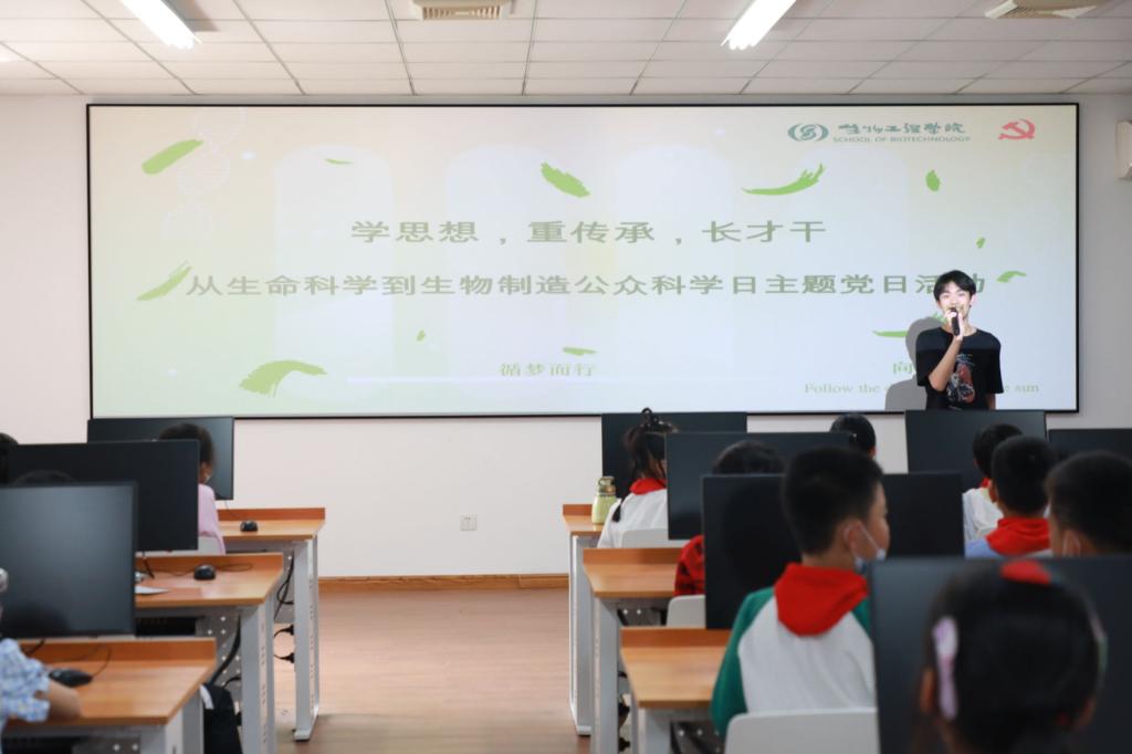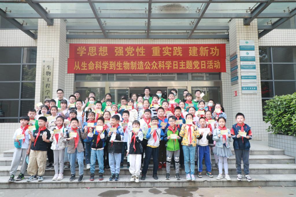 教工糖生物技术群党支部、教工办公室党支部、教工科研教学实验平台党支部以及2021级本科生联合举办,约100名无锡市小学生参加活动。