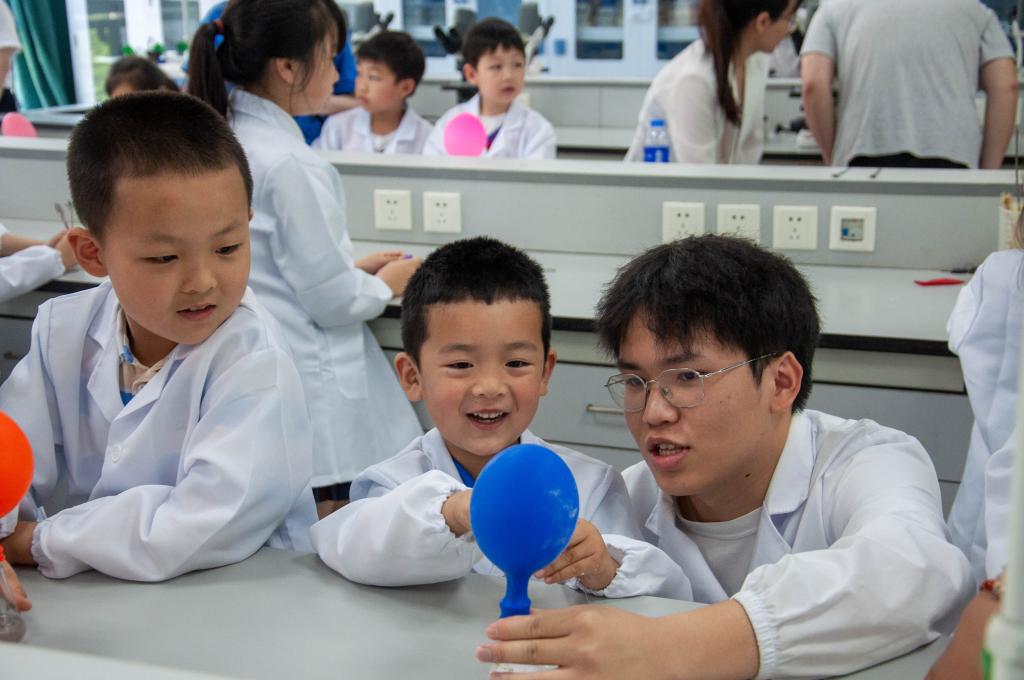 趣味科普小课堂。走进实验室,小朋友们认真穿戴好实验服,迫不及待地准备开展下个环节“趣味科普小课堂”。学院IGEM竞赛团队的同学们为小朋友们带来了《走近科学的色彩》《邂逅“微生物”的浪漫》主题分享。