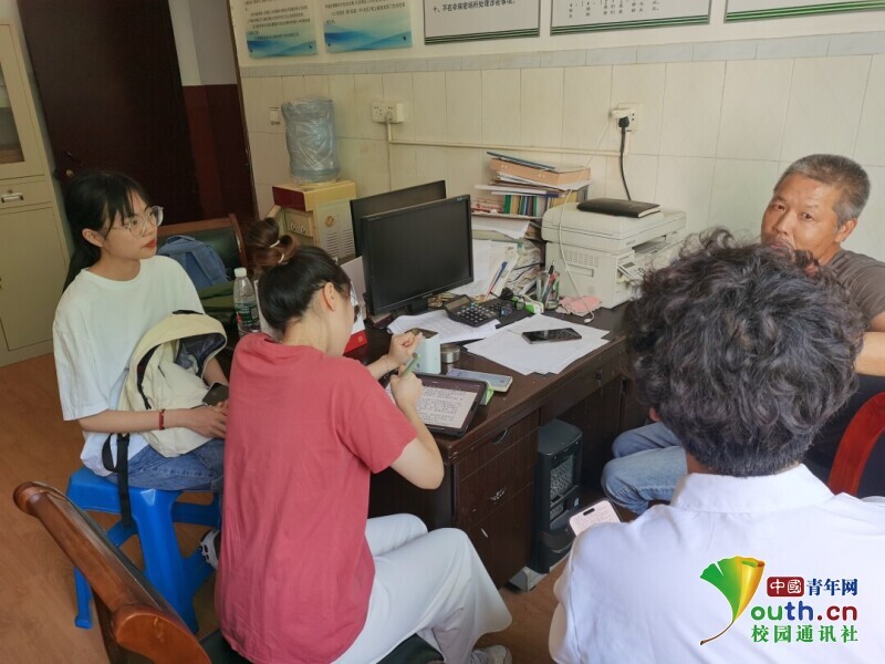 图为实践团成员与安阳山村村委干部交流。中国青年网通讯员 王云萱 供图