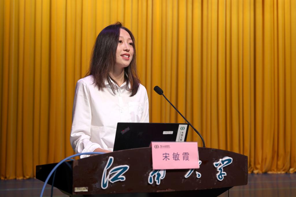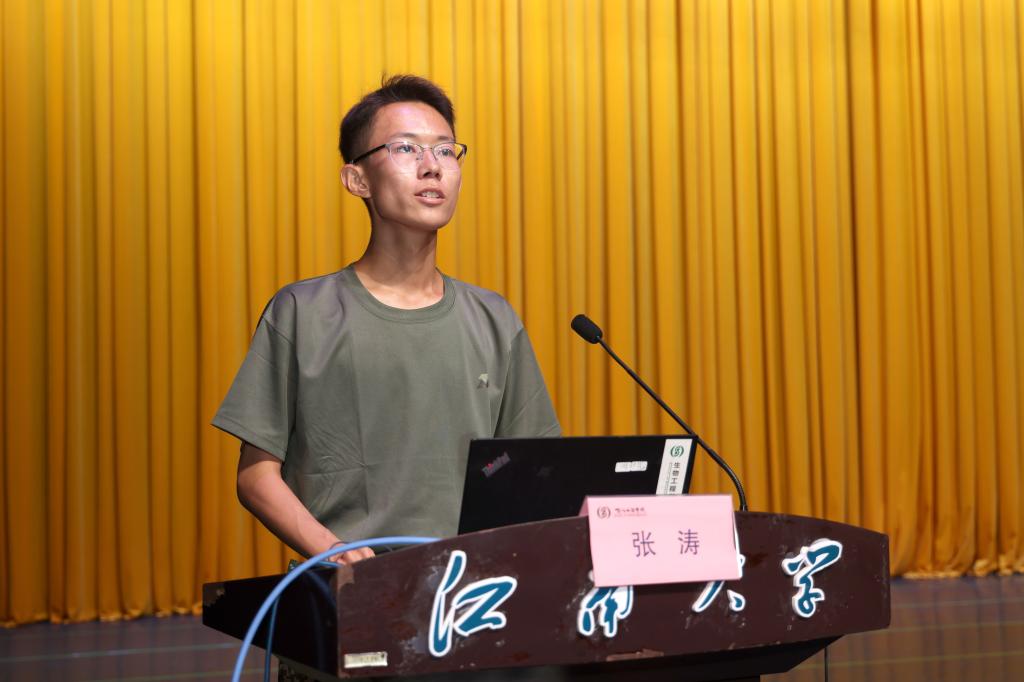 研究生新生代表、发酵工程专业2023级硕士研究生宋敏霞以“缘”为题与在座同学分享在江大的过去,展望未来;本科生新生代表、酿酒2302班张涛以“愿”为题激励着同乘梦想邮轮的同学们于生工展少年之风华。