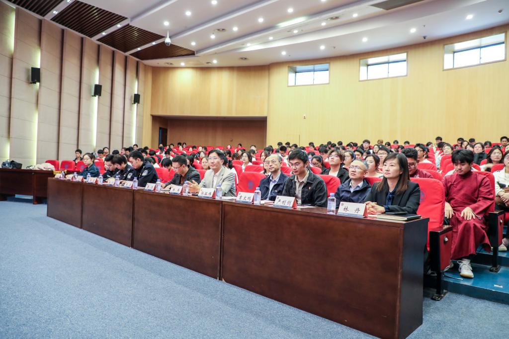 反诈思政课堂暨校外辅导员聘任仪式在远东报告厅举行。江南大学学生工作处副处长蒋洁,江南大学保卫处副处长吴江,滨湖区雪浪派出所副所长毛宁,无锡电信网络操作维护中心党支部书记洪伟,UED体育