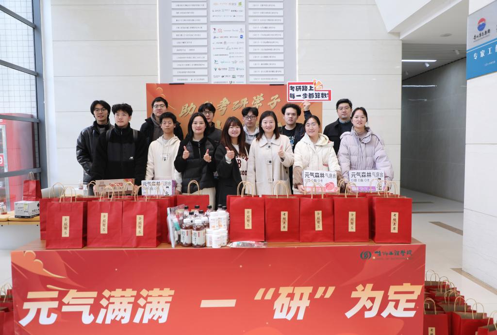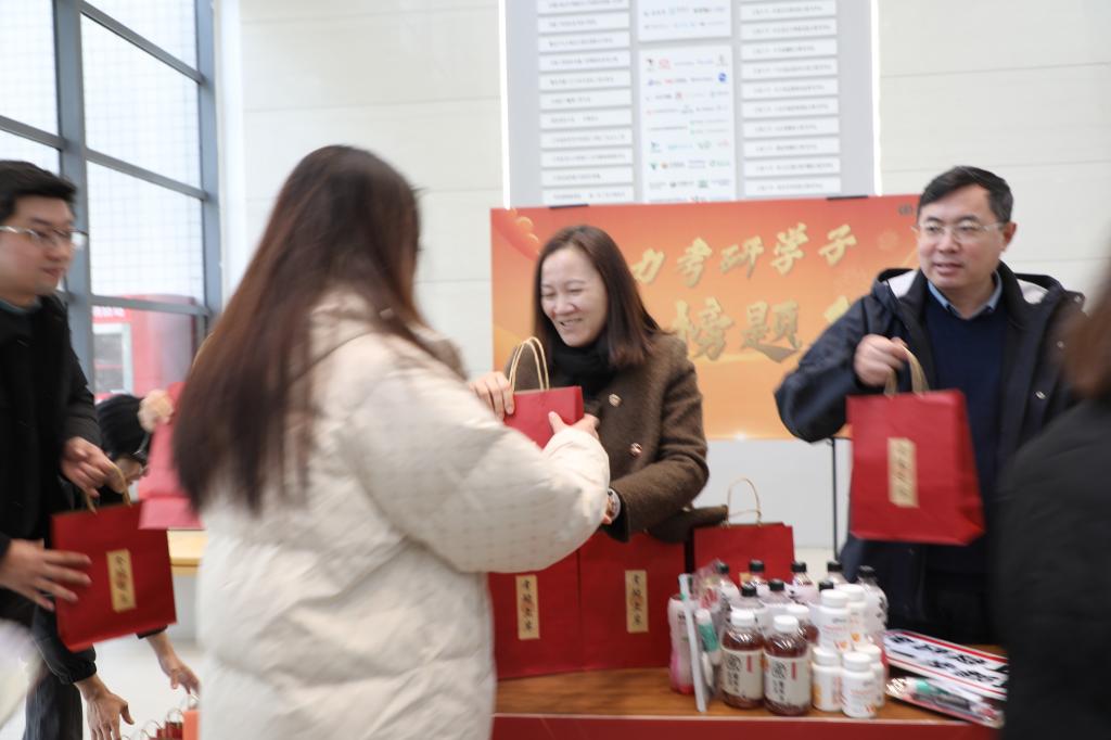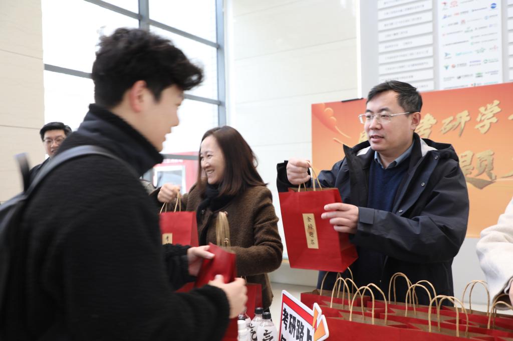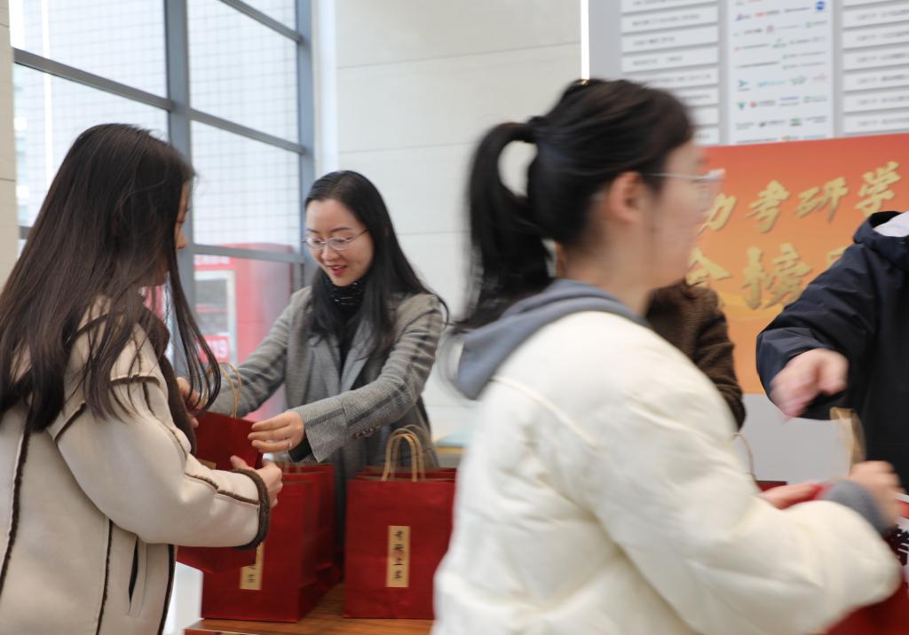 举行2025届毕业生考研慰问活动,学院党委书记程捷音,院长刘龙,副书记、副院长林丹,副院长陈晟,分团委书记周春江,毕业班班主任及辅导员韩俊为考研同学们送上加油助力包。