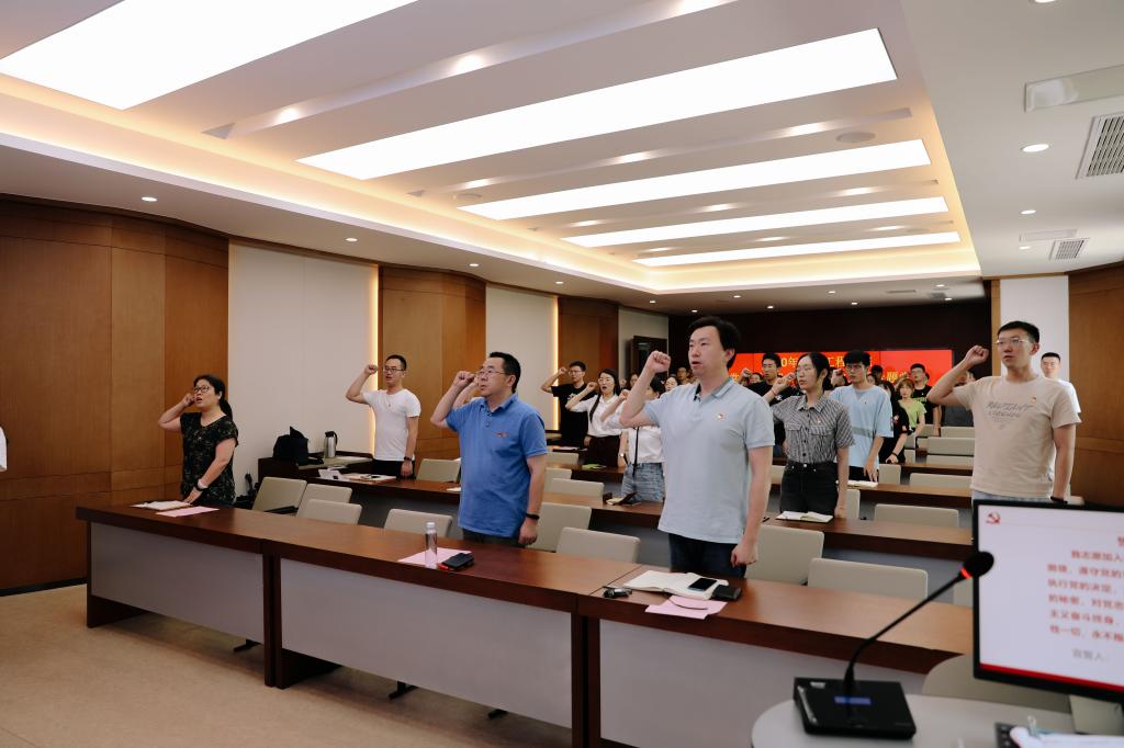 宣誓仪式之后,院长许正宏同志向新党员作了题为《不忘初心、牢记使命 做有担当的新时代青年党员》的专题党课。他以生动的语言、详实的事例,从解读中国共产党人的初心使命入手,结合抗疫期间90后彰显的青春蓬勃力量、当前中美博弈背后的现实逻辑,以及学院一流学科发展历史的回溯与展望,激励青年同志们认清当前“百年未有之大变局”,将“为中国人民谋幸福,为中华民族谋复兴”作为一生志业,提升学科专业认知,把论文写在祖国大地之上,以真才实学服务人民,以创新创造贡献国家。
