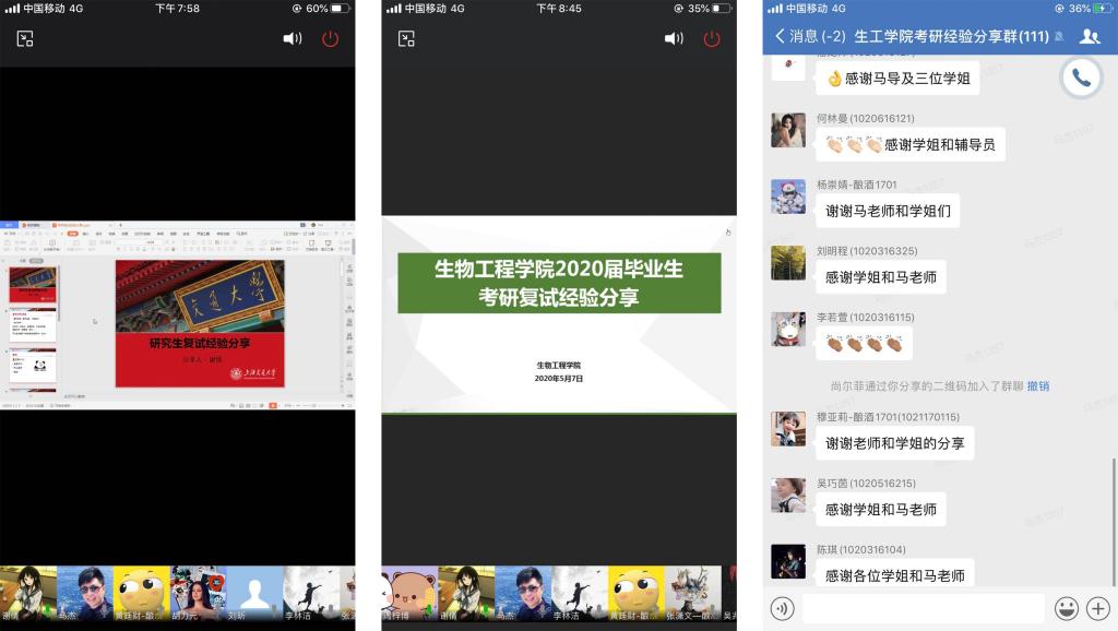 为帮助受疫情影响的考研学生增强信心,更加充分地做好复试和调剂准备,5月7日晚7点半,在摸清2020届考研学生初试成绩和排名的基础上,生物工程学院以网络会议形式,组织开展2020年考研复试“云辅导”。会议由2016级辅导员马杰主持,邀请江南大学校友、上海交通大学海洋生物专业研究生谢倩,UED体育官网