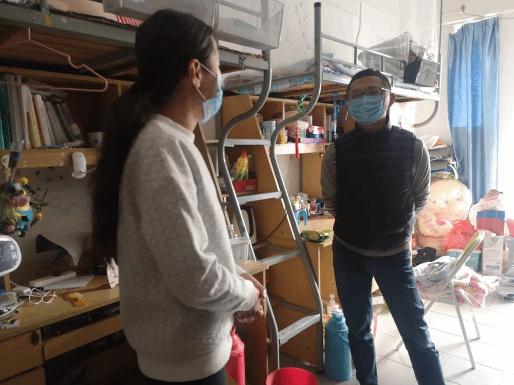近日,学院党委副书记、(兼)副院长陈勇、分团委书记葛玲、研究生辅导员桑鸿波、2018级辅导员侯景瑞逐个走访看望留校学生,了解他们在校学习、生活情况。