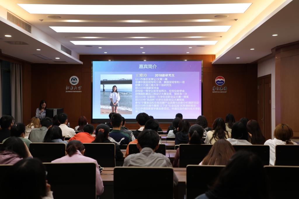 王雅玲同学则从个人成长和未来职业规划方面分享了自己的经验心得。谈到获得国家奖学金的经验,她重点介绍了文章发表的各个步骤和具体时间节点。同时,她讲解了如何申请国外博士offer、如何解决费用等一系列同学们关注的问题,并用自己的例子来分享如何具体申请和取得教授的认可。针对如何在秋招斩获心仪offer,她提到要多参加竞赛,培养自己的领导力和创新力,并鼓励同学们在面试过程中勇于表达。最后,她谈到要注意优化时间管理,不做无效工作,在科研之余,可以通过积极参加体育活动、支教工作、社会社团等提升自我能力。