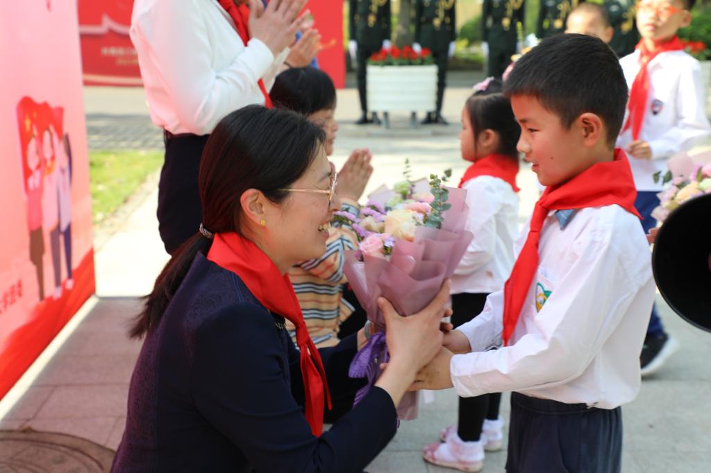 党委副书记周云龙老师为小朋友们颁发升旗仪式证书和纪念品。通过本次活动,进一步培养了同学们的爱国主义情感,也为大家留下了一次记忆深刻的母亲节。
