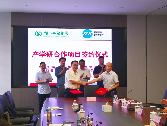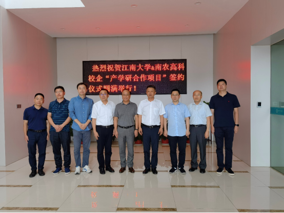 的发展历史、学科情况、产学研合作概况进行了介绍;南闸街道党工委书记李志浩介绍了南闸街道相关产业发展概况,并对南农高科与江南大学的合作签约提出了期望;史劲松教授回顾了与企业的交往故事,并充分肯定双方合作项目的重要意义;许正宏教授指出要与南农高科通力合作,深入推进合作项目的实施,同时也希望本次的校企合作能进一步升华为校地合作。会后,许正宏、史劲松教授一行还与南农高科研发团队就企业产品研发过程中的细节问题进行了深入交流与探讨,为研发工作的全面开展进行了规划和展望。