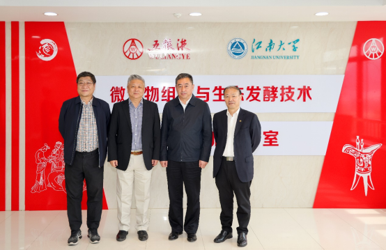 马纯良参观了江南大学-五粮液股份“微生物组学与生态发酵技术协同创新实验室”。徐岩围绕协同创新实验室在人才培养、科学研究和技术创新三方面的建设情况展开介绍。近年来,江南大学以协同创新实验室为载体,为五粮液股份输送了多名风味化学、微生物学和发酵工程高质量人才;协同创新联合研究团队对五粮浓香型白酒的科学内涵进行了系统解析,首次发现并成功鉴定了浓香型白酒酿造的主体己酸菌新种,在我国食品与发酵工业领域在科技创新上取得了新突破;“单粮与多粮浓香型白酒固态发酵酒醅微生物结构和代谢特征解析”科技成果鉴定为国际领先水平,荣获行业科技进步奖。