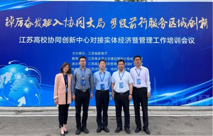 5月23-24日,江苏高校协同创新中心对接实体经济暨管理工作培训会在徐州举办。教育部科信司一级巡视员张国辉、江苏省教育厅副厅长袁靖宇出席会议并讲话。省发展改革委、科技厅、工业和信息化厅和徐州市等有关领导和部门负责人、省内各高校协同创新中心牵头建设高校负责人、各协同创新中心负责人及主要协同单位代表、科技园、孵化器代表300余人参加会议。江南大学产业技术研究院院长王立,产业技术研究院副院长李博,UED体育