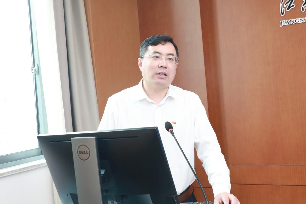 党委书记程捷音、院长刘龙等党政班子成员,粮食发酵与食品生物制造国家工程研究中心、未来食品科学中心班子成员等参会。马克思主义学院副院长刘俊杰教授作主题教育专家辅导报告。