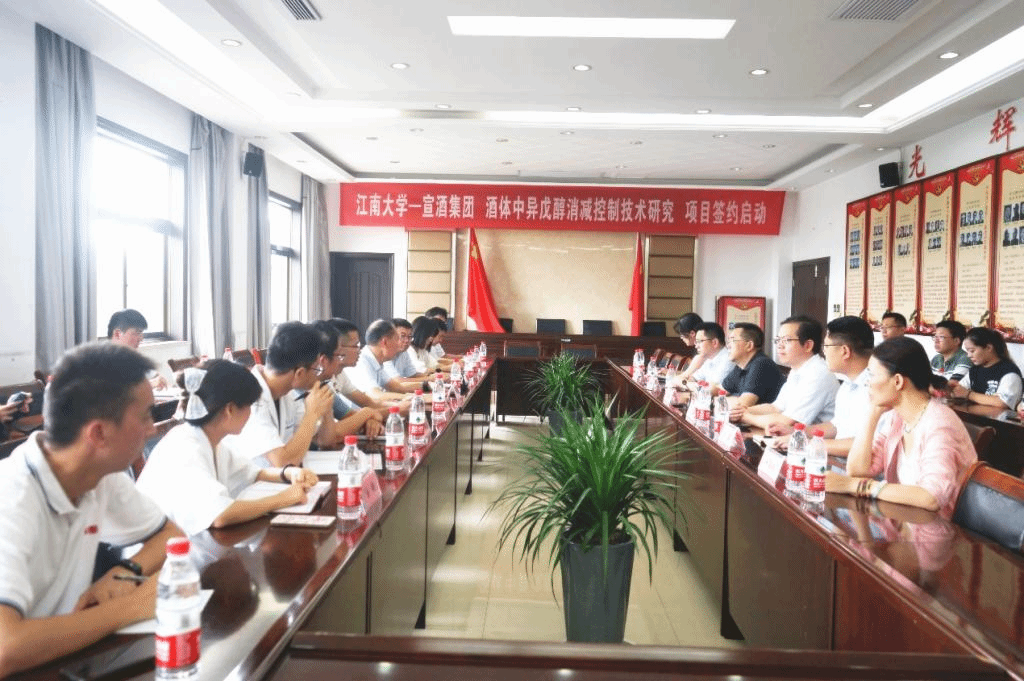 安徽宣酒集团股份有限公司位于“江南诗山”宣城敬亭山南麓,历史悠久,风景秀丽。独特的气候条件造就了适合于酿造的微生态环境。公司秉承质量为先的宗旨,目标铸造江南名酒品牌。江南大学与安徽宣酒集团的这项合作将为产品品质进一步提升打下坚实基础,推动宣酒在高质量发展的赛道上奋力奔跑。这个令人振奋的合作项目标志着两家机构合作的开始,必将为中国白酒行业带来更多令人瞩目的突破和创新。