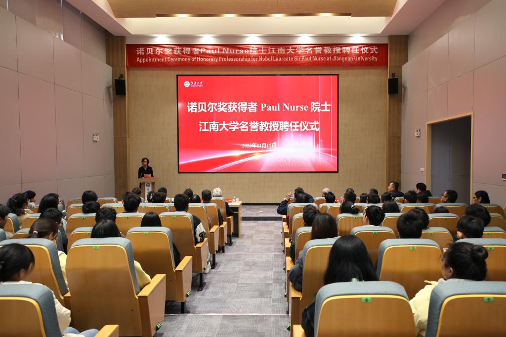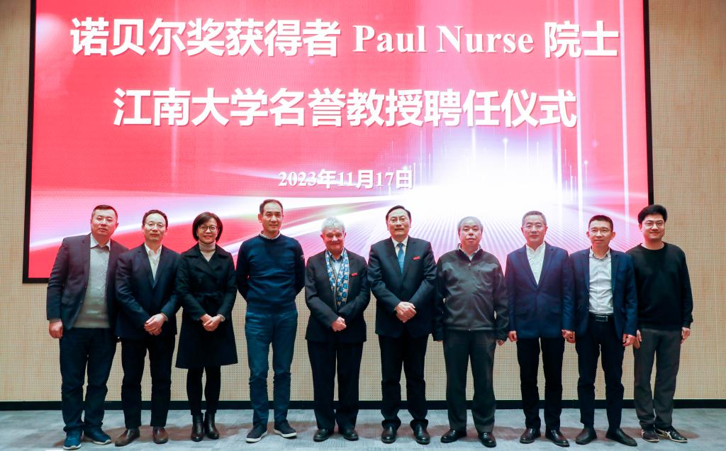11月17日,我校举行诺贝尔奖获得者Paul Nurse(保罗·纳斯)院士江南大学名誉教授聘任仪式。诺贝尔奖获得者、中国科学院外籍院士、英国布里斯托大学荣誉校长Paul Nurse教授,校党委书记吴正国,中国工程院院士、校长陈卫,校党委常委、副校长堵国成,北京大学生命科学学院孔道春教授、未来食品科学中心相关教授出席仪式。仪式由校党委常委、副校长张影陆主持。
