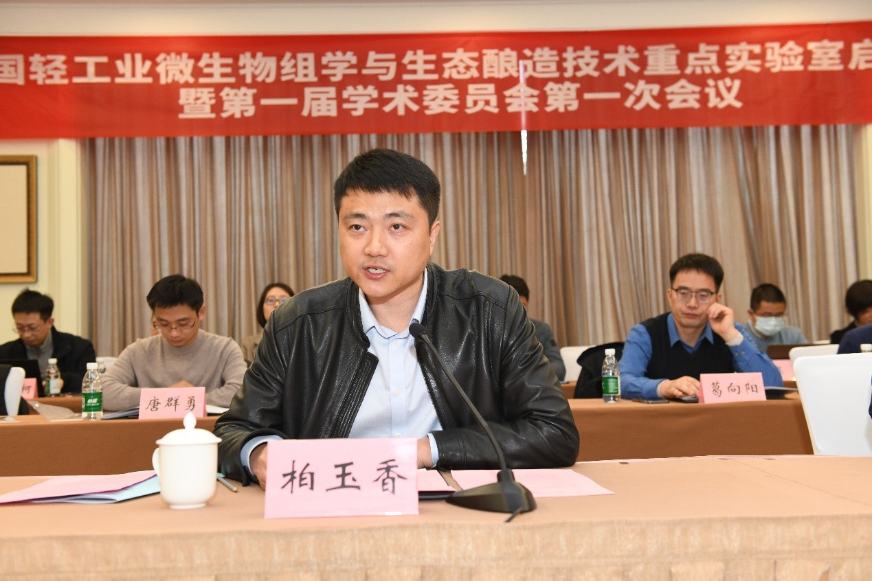 院长刘龙教授,中国食品发酵工业研究院有限公司副总经理郭新光,中山大学李文均教授,复旦大学孙文权教授,江苏洋河酒厂股份有限公司总工程师周新虎,安徽古井贡酒股份有限公司副总经理、总工程师李安军,江苏今世缘酒业股份有限公司副董事长、总工程师吴建峰,河南仰韶酒业有限公司副总经理、总工程师韩素娜,江南大学范文来研究员,江南大学吴群教授等学术委员会委员,中国轻工业联合会副秘书长于学军,中国轻工业联合会综合业务部处长李永智,江南大学党委副书记戴月波,江南大学科学技术研究院副院长柏玉香,江南大学酿造微生物学与应用酶学研究室以及茅台、五粮液、洋河、古井贡、今世缘、景芝等企业科研人员参加了本次会议,学术委员会委员美国俄勒冈州立大学Michael Qian教授,山西杏花村汾酒厂股份有限公司总工程师韩英在线参加。重点实验室启动会由柏玉香主持。
