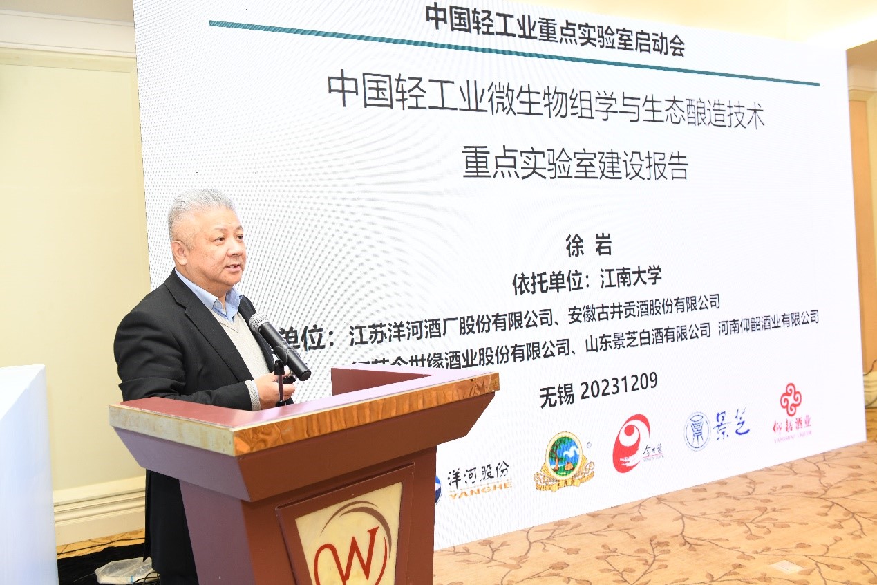 12月9日上午,由江南大学牵头,联合江苏洋河酒厂股份有限公司、安徽古井贡酒股份有限公司、江苏今世缘酒业股份有限公司、山东景芝白酒有限公司、河南仰韶酒业有限公司五家黄淮产区名酒企业共同建设的中国轻工业“微生物组学与生态酿造技术”重点实验室启动会暨第一届学术委员会第一次会议在无锡成功召开。