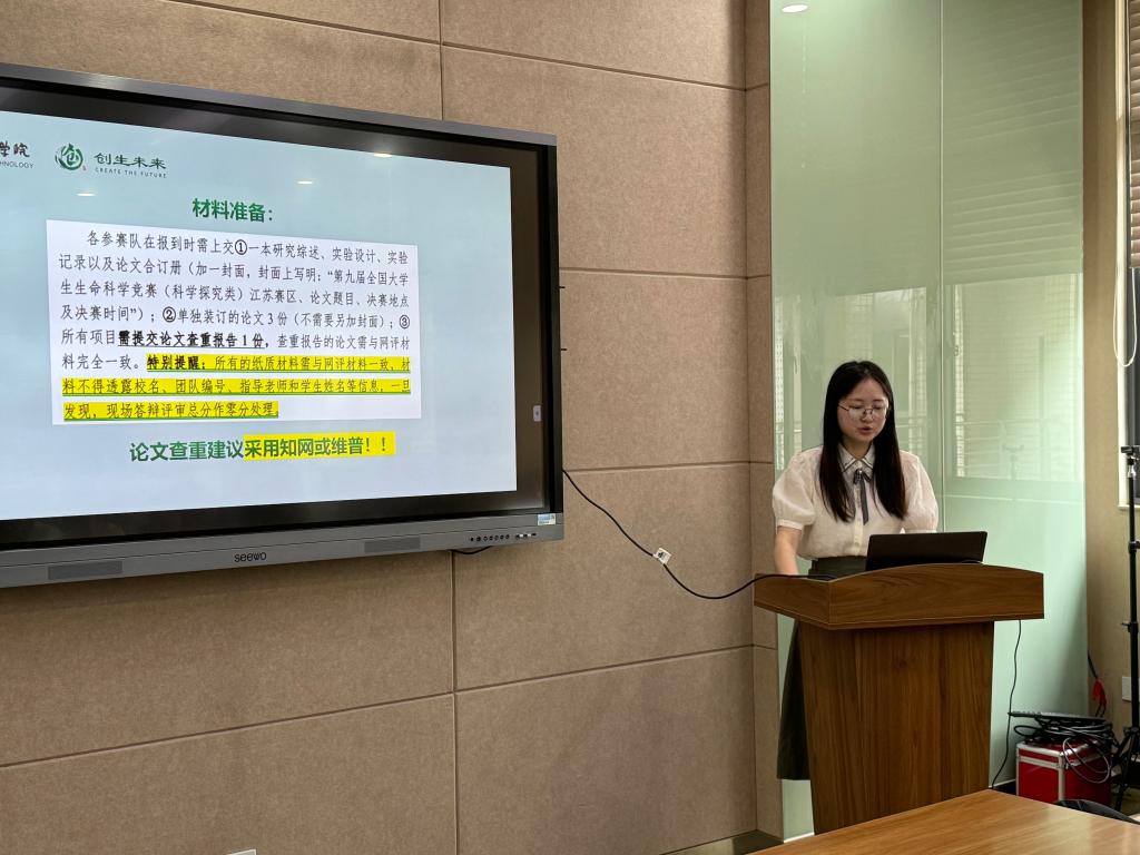 刘畅重点讲解了在生科竞赛省决赛中的注意事项,强调各项目团队要把握参加生科竞赛的关键,在实验过程中要有所感、有所思、有所得。