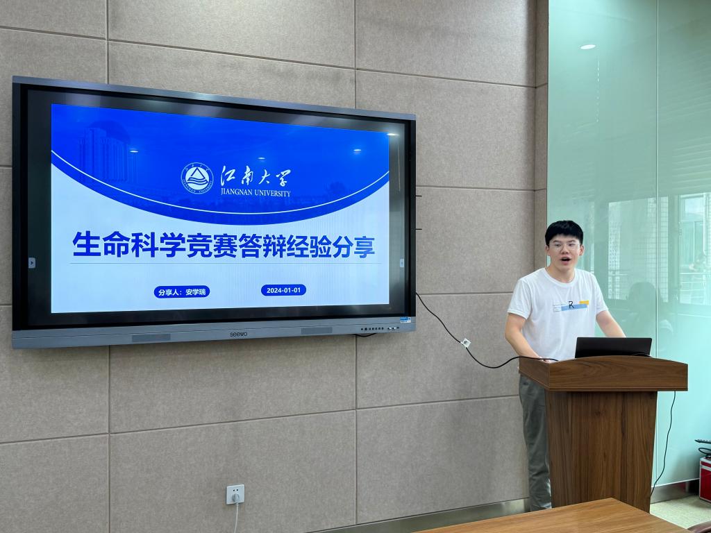 安学瑞作为2023年生命科学竞赛全国一等奖获得者做经验交流。从赛前准备、分工合作、参赛过程、比赛答辩等方面分享了切实可行的宝贵经验,提出实验记录排版要规整、内容要详略得当、核心内容要突出、重要信息要保密等,并提醒各参赛团队注意分工协作。分享之后,和现场同学进行交流互动并答疑解惑。