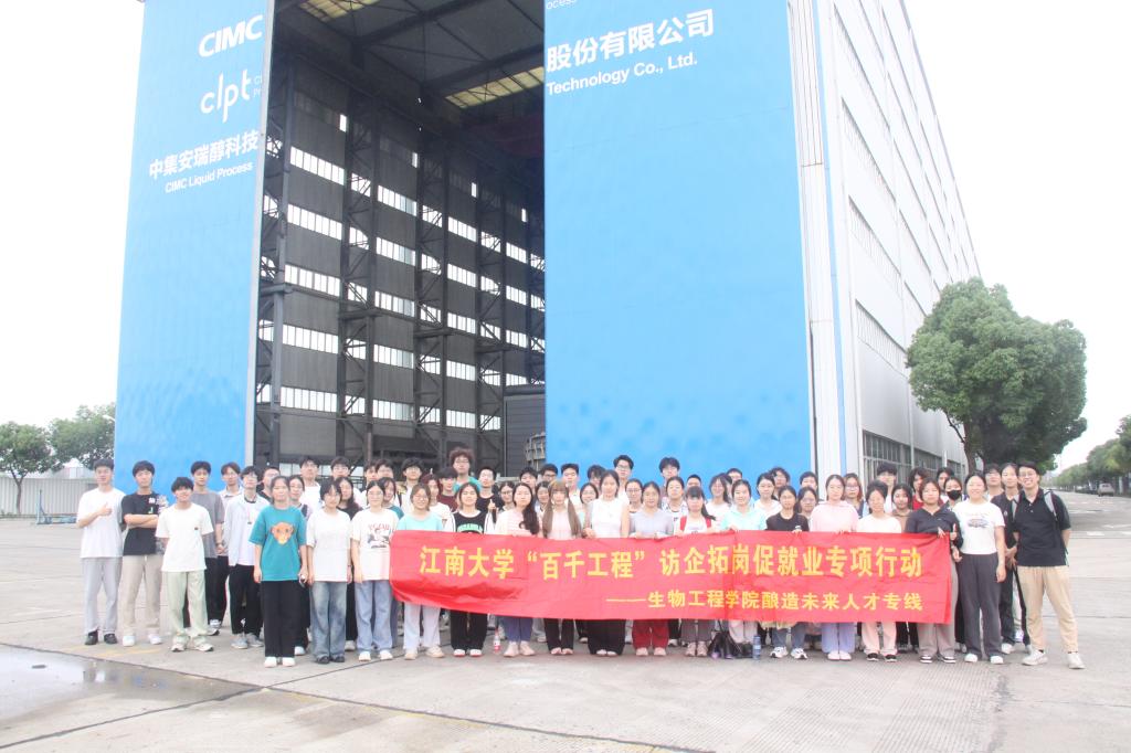 为进一步贯彻党中央、国务院关于高校毕业生就业工作的决策部署,进一步深化产教融合,切实推进院企协同育人和高质量充分就业。学院专业课教师带领2022级基地班、酿酒工程、生物工程专业180余位本科生分赴无锡福祈制药有限公司、无锡玉祁酒业有限公司、无锡振太酒业有限公司、无锡杰能科生物科技有限公司、百威英博啤酒南通有限公司、南通中集安瑞科食品装备有限公司、宜兴食品与生物技术研究院以及江苏国信协联能源有限公司开展“百千工程”访企拓岗专项——“酿造未来”人才专线活动。