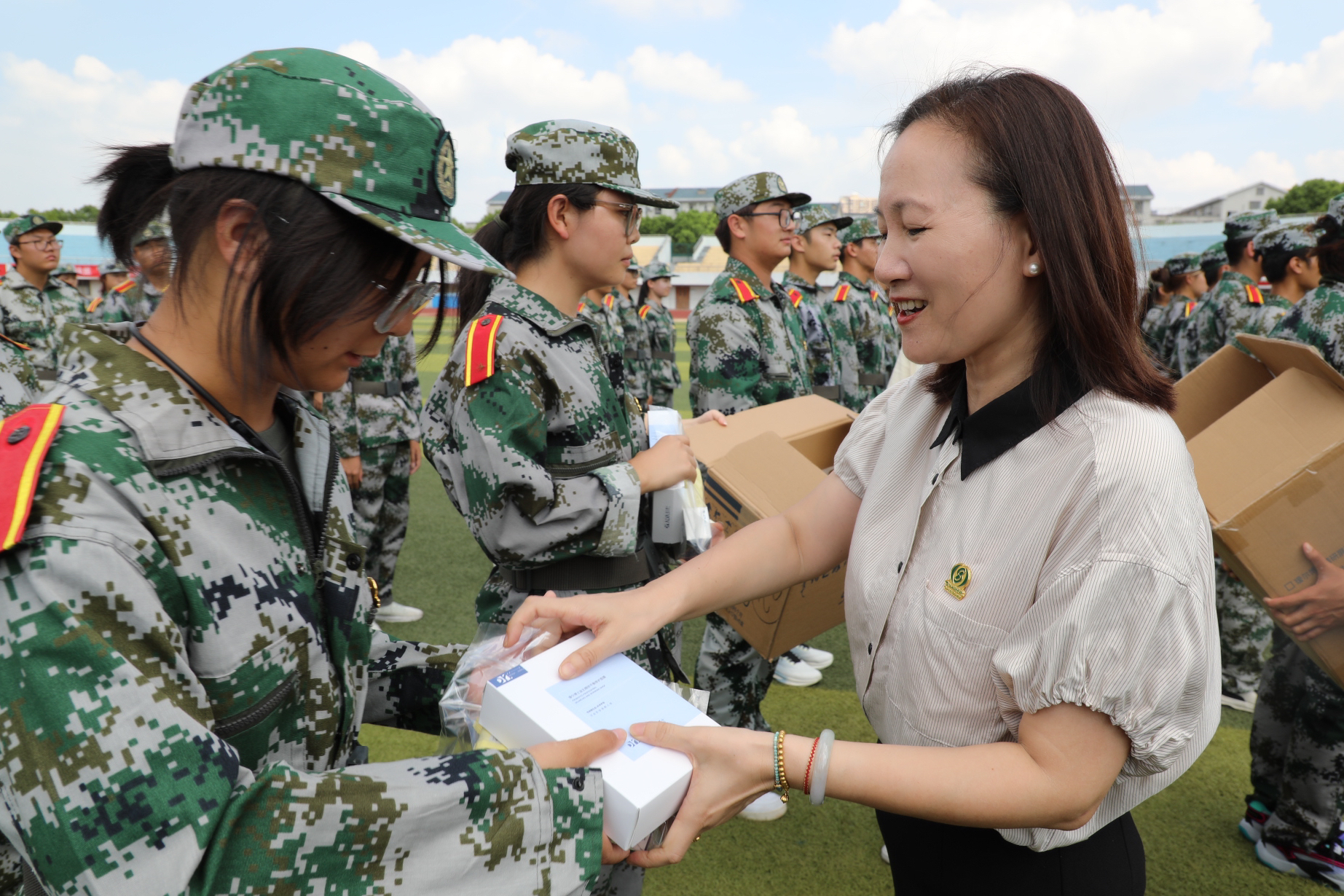 最后,领导老师们为每位同学送上慰问礼包,并亲切询问军训感受和生活情况。
