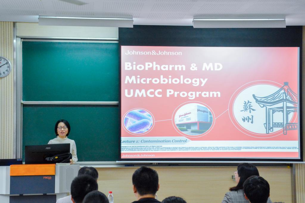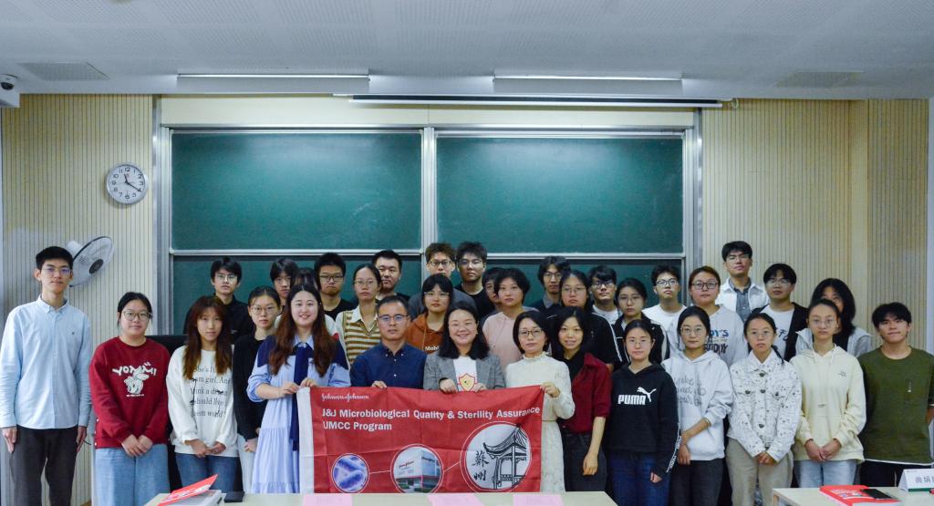 与强生(苏州)医疗器材有限公司2024年度校企合作课程(医疗器械和制药微生物学UMCC模块)正式开班。强生(苏州)医疗器材有限公司微生物质量和无菌保证(MQSA)总监刘雪美、MQSA经理朱健杰、MQSA高级研究员曲娟娟、MQSA研究员孙艺萌,UED体育