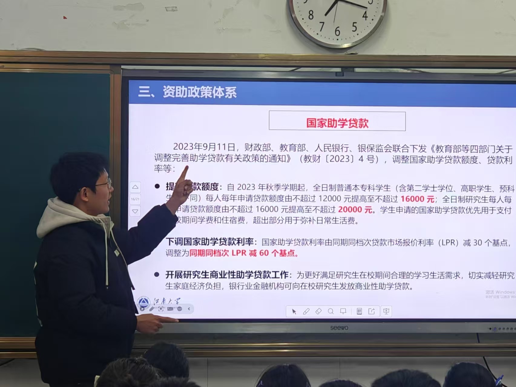 选拔优秀受奖助学生担任学生资助宣传大使,开展资助政策宣讲活动。
