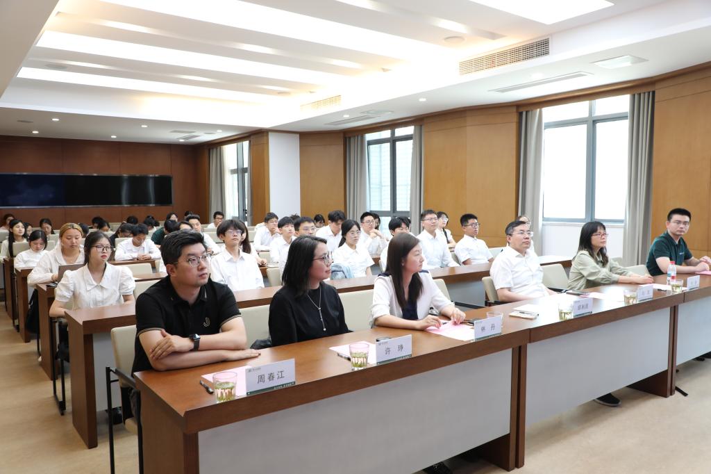 林丹宣读了本届奖学金获奖名单,刘东明等22名同学获奖。颁奖环节,邱利民与刘龙为一等奖获奖者颁奖,杨静与林丹为二等奖获奖者颁奖,许琤与周春江为三等奖获奖者颁奖。颁奖仪式之后,2021级博士生孙驰翔发言,他分享了自己在UED体育官网
