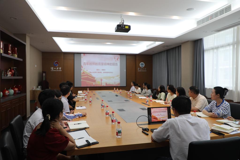 座谈会特邀未来食品科学中心副主任周景文教授作“弘扬教育家精神”专题报告。周景文从“三全育人”的指导思想、初步成效以及“为祖国健康工作五十年”三个方面,系统介绍了自己在立德树人、科研育人、实践育人等方面的探索与心得。他勉励青年教师要肩负起为祖国、人民和家庭作贡献的责任,并为此始终保持身心健康,以饱满的热情与持久的动力投身于教育事业。