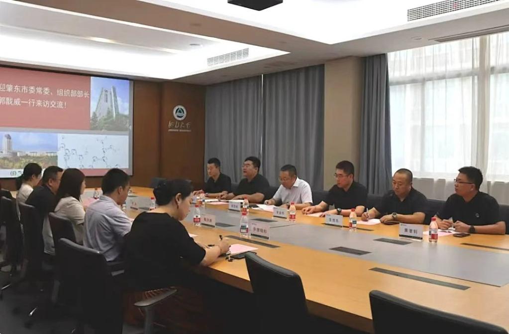 10月13日,黑龙江省肇东市委常委、组织部部长郭戬威一行来我校调研交流。肇东市工信科技局局长宋金伟、市委组织部副部长孙向泽、市委组织部办公室主任岳旭东、市委组织部人才办主任李强,以及市星湖生物科技有限公司副总经理黄誉钊陪同。UED体育官网